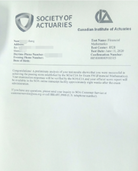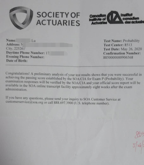 谢谢学员的无私分享,这里也再次恭喜这6位学员通过Exam P!只要你们足够用心,坚持不懈地去努力,相信你们都能得到自己想要的答案。