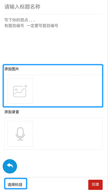 登录完毕后点击对应考试进入页面,点击“+”即可进入创建问题页面。